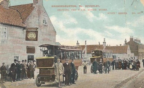 Photo: “Brandesburton, with NER motor buses 1915 (archive ref PO-1-18-1)” by East Riding Archives is marked with CC0 1.0