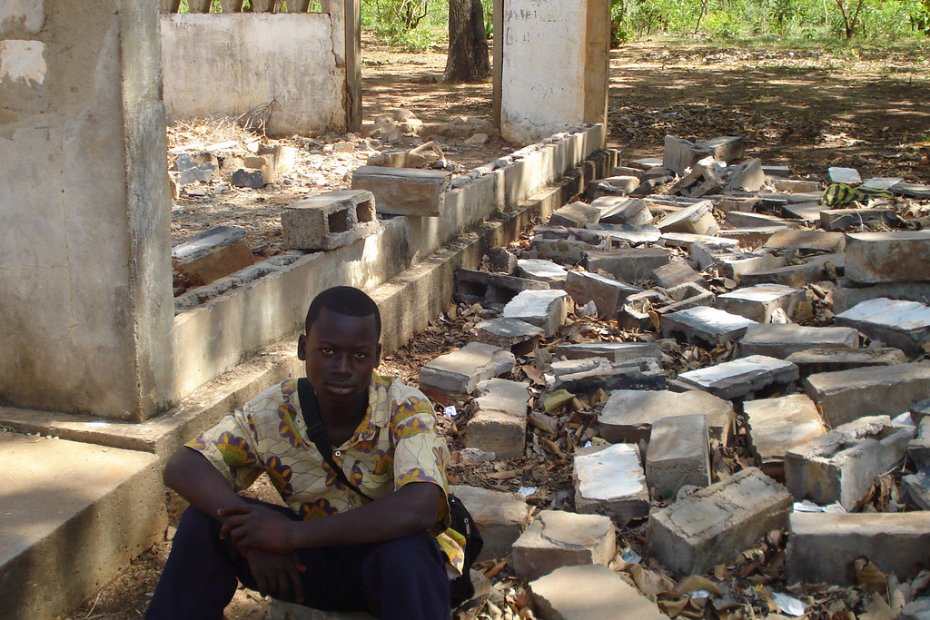 Photo: “Ndélé highschool student in front of destroyed school” by hdptcar is licensed under CC BY 2.0.