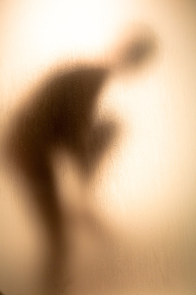 behind the opaque frosted shower screen that once more stands between us two. While at the mirror you apply foundation and concealer, I