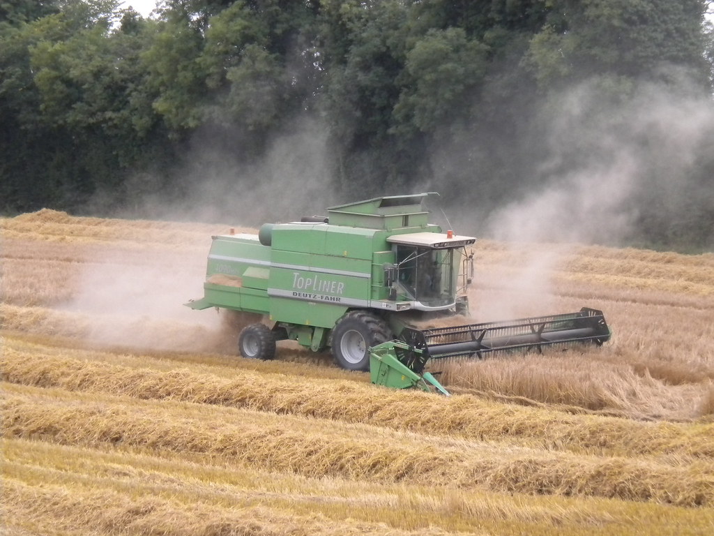 Photo: “Combine Harvester (Deutz-Faher TopLiner 4090 HTS) – at work at Moyvalley, Co. Kildare, Ireland. September 1st 2011” by Peter Mooney is licensed under CC BY-SA 2.0.